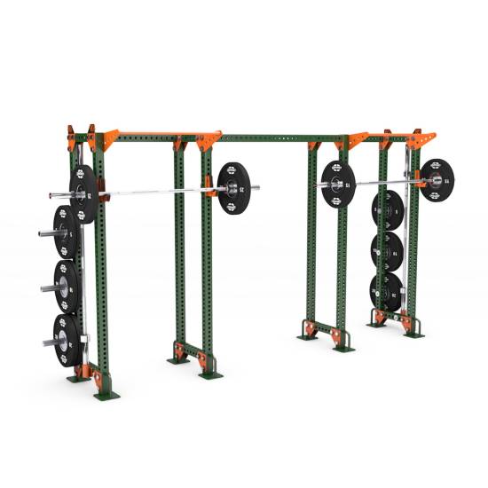 Den smale profilen gjør Narrow Rack Double spesielt godt egnet for fasiliteter hvor plassutnyttelse er avgjørende. Til tross for det kompakte designet leverer rammen ekstrem stabilitet og sikkerhet – selv ved tunge knebøy, benkpress og rack pulls.