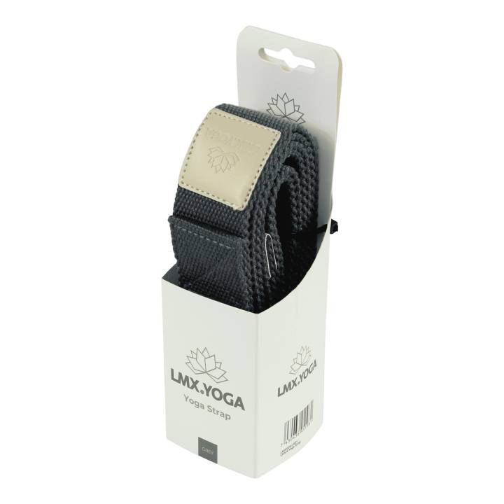Stropp til yogatrening. Hjelper ved utførelse av diverse yogaøvelser og er skadeforebyggende. Lengden er justerbar og kan tilpasses ulike nivåer.