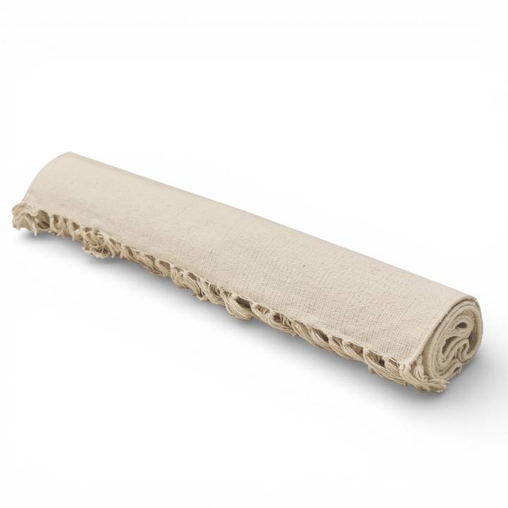 Teppet er lett å rulle sammen og transportere, slik at det også kan brukes som et personlig underlag når du er på farten eller deltar på en yogatime. Den naturlige, ublekede fargen understreker materialets opprinnelige karakter og støtter en tilknyttet og mindful praksis.