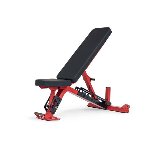 Benken er konstruert med et bredt støtteben bak og et støtteben med full kontakt foran, som sikrer perfekt stabilitet under trening. Den spesielle vektfordelingen gjør at benken på ca. 40 kg føles lettere enn lignende modeller, noe som gjør det enkelt å flytte benken rundt med håndtaket i front og de robuste transporthjulene.