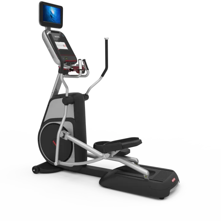 Profesjonell ellipsemaskin med OpenHub™ 10" berøringsskjerm. I samme serie finnes det ellipsemaskiner med LCD-skjerm og 15" berøringsskjerm. Ellipsemaskinen er nesten like vanskelig å klare seg uten på kardio-gulvet som tredemøllen.
