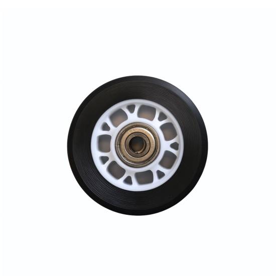 Hjulet er laget i robust plast med gummibelegg og innebygd kulelager. Konstruert for høy belastning og daglig bruk i både studio og hjemme.